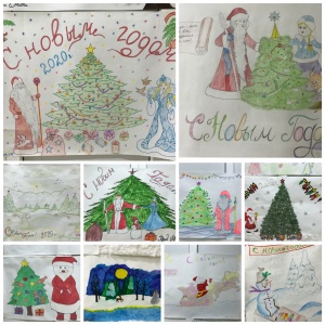 В МБОУ «ООШ с. Катар-Юрт» На кануне новогодних праздников между учащимися 1-6 классов прошёл конкурс рисунков « Мой счастливый Новый год»