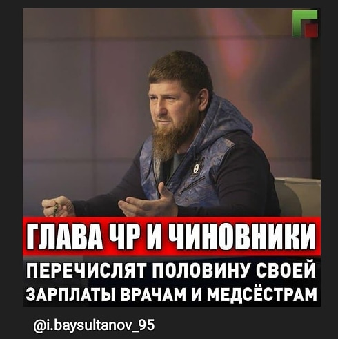 «Мы с глубокой скорбью воспринимаем поступающие из разных стран сообщения о болезни и кончине медицинских работников. Народы перед ними в неоплатном долгу. Хочу выразить слова признательности членам Оперативного штаба во главе с дорогим БРАТОМ, Председателем Парламента ЧР Магомедом Даудовым, которые ежедневно решают сотни проблем. Вместе мы победим
