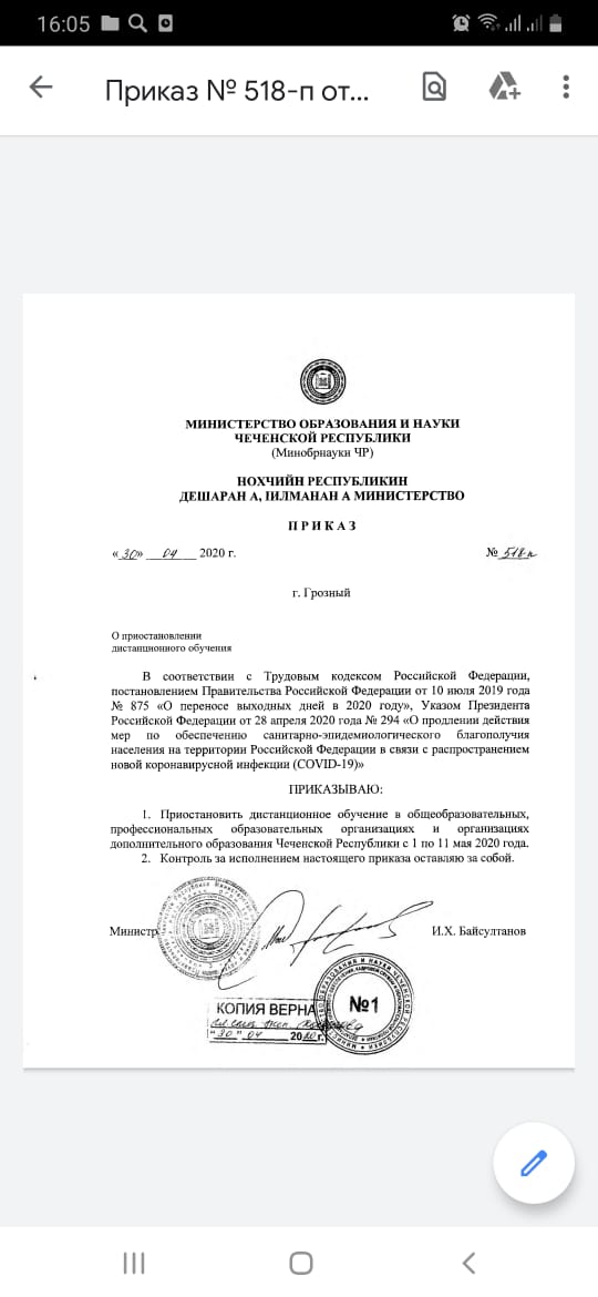 О приостановлении дистанционного обучения.