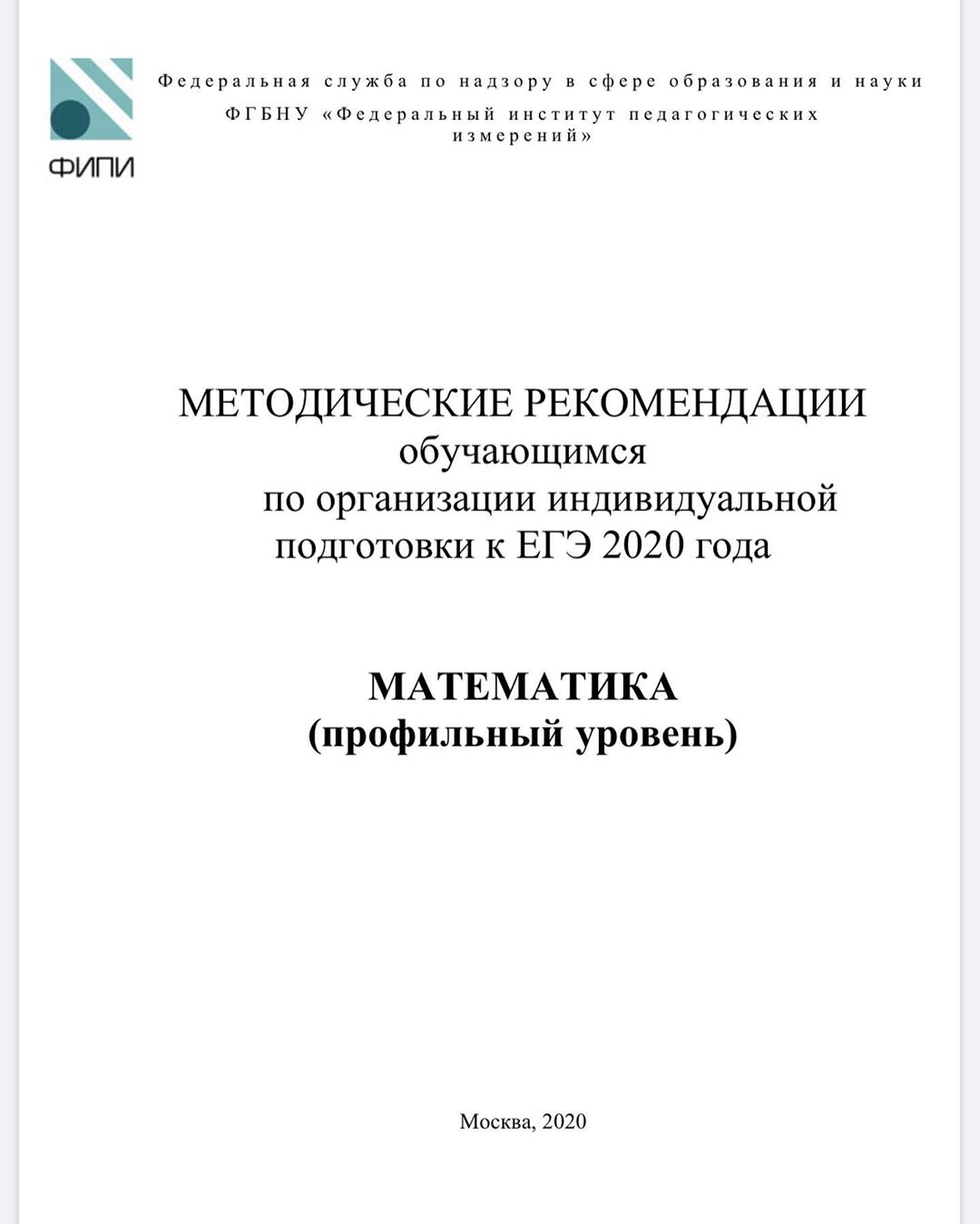 Методические рекомендации обучающимся по организации индивидуальной подготовки к ЕГЭ 2020 года по математике (профильный уровень). опубликованы на сайте ФИПИ.