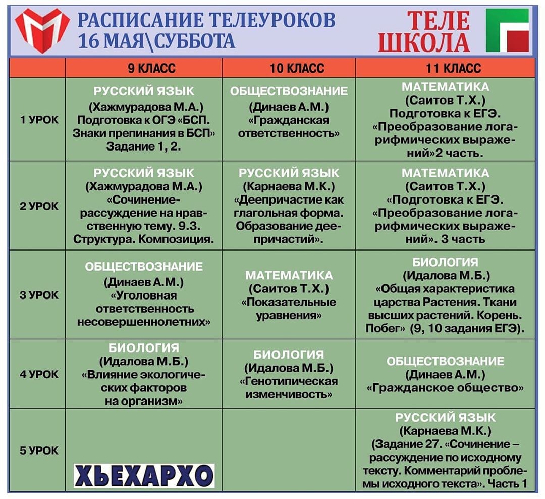 16.05.2020Занятия продолжительностью до 10 минут начинаются в 9.00. Отметим, что все образовательные выпуски телепроекта доступны для просмотра на сайте Министерства образования и науки ЧР по ссылке, указанной в шапке профиля @minobrnauki_95. #МОН95 #Байсултанов