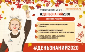 03.09.2020День знаний: начал работу федеральный портал, посвящённый 1 сентября 2020.В преддверии Дня знаний запущен тематический сайт 1сентября2020.рф, на которомпроходит Всероссийская акция #ДеньЗнаний2020. Тематический портал создан для поздравления учителей, школьников и родителейс Днем знаний и новым учебным годом.Организаторы приглашают учителей, школьников, первоклашек и их родителейпринять участие в акции #ДеньЗнаний2020.