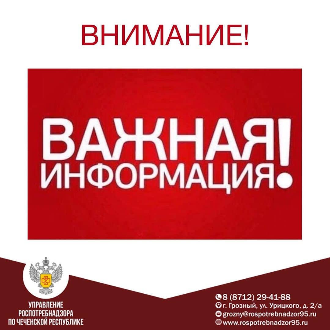 04.09.2020ВНИМАНИЕ! В целях недопущения возникновения и распространения случаев заболевания новой коронавирусной инфекции (COVID-19) и недопущения массового скопления людей возле лаборатории ФБУЗ «Центр гигиены и эпидемиологии в Чеченской Республике» для сдачи анализов на «энтеробиоз» и получение справок об эпидемиологическом окружении, необходимых для предоставления в детские дошкольные и общеобразовательные организации, ⠀ ❗️❗️❗️информируем Вас о составлении ГРАФИКОВ выездов в данные организации, где специалистами лаборатории НА МЕСТАХ будет проводится отбор биоматериала от детей для последующих лабораторных исследований. ⠀ Результаты анализов в последующем будут направляться руководителям детских дошкольных образовательных организаций. ⠀ Убедительная просьба гражданам не нарушать правила социального дистанциирования и соблюдать масочный режим! _____________________________ Управление Роспотребнадзора по Чеченской Республике 📲 горячая линия по COVID-19: 8 (989) 916-72-34 8 (938) 989-07-58 📍 ЧР, г. Грозный, ул. Урицкого, д. 2/а ☎️/📠 8 (8712) 29-41-88 ✉️ grozny@rospotrebnadzor95.ru 🌐 www.rospotrebnadzor95.ru