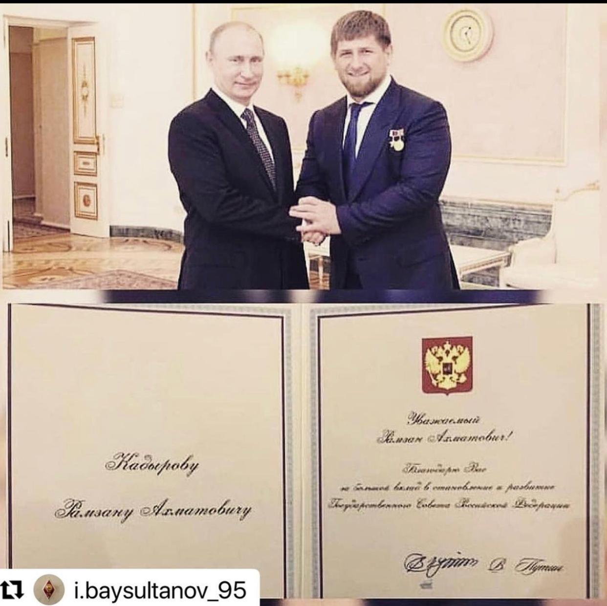 Поздравляю МОЕГО ДОРОГОГО БРАТА, Главу Чеченской Республики, Героя России Рамзана Ахматовича Кадырова с получением Благодарственного письма Президента Российской Федерации Владимира Владимировича Путина «За большой вклад в становление и развитие Государственного Совета Российской Федерации».
