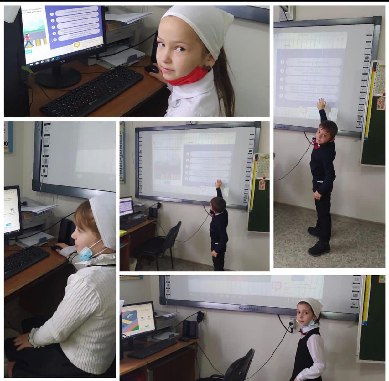 Ученики 1 «Б» класса проходят онлайн -олимпиаду " Безопасные дороги"