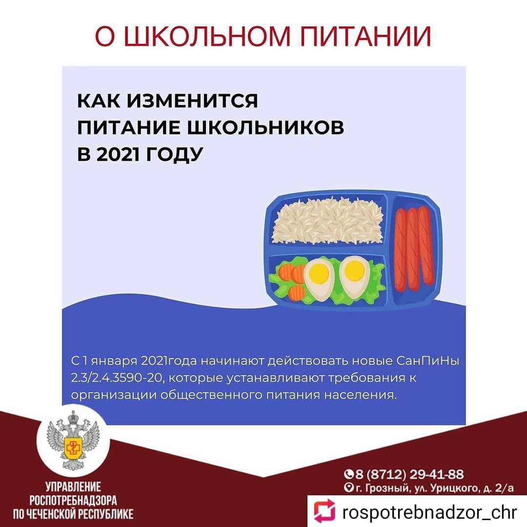 11.01.2021С 01.01.2021г. начинают действовать новые СанПиНы 2.3/2.4.3590-20, которые устанавливают требования к организации общественного питания населения. ❗Один из самых важных разделов документа посвящен особенностям организации общественного питания детей. ✔️Главный принцип - питание должно быть здоровым, полноценным, учитывать особенности региона. ⠀ 🔺Так, в санпинах прописано, что при приготовлении блюд должна использоваться не обычная соль, а йодированная. 🔺В школьном меню обязательно должно быть горячее питание. 🔺В организованных детских коллективах исключение горячего питания из меню, а также замена его буфетной продукцией не допускаются 🔺Меню должно предусматривать распределение блюд, кулинарных, мучных, кондитерских и хлебобулочных изделий по отдельным приемам пищи (завтрак, второй завтрак, обед, полдник, ужин, второй ужин). 🔺Меню допускается корректировать с учетом климатогеографических, национальных, конфессиональных и территориальных особенностей. И есть даже подробная таблица, какой продукт чем можно заменить. Например, 100 граммов говядины можно заменить 104 граммами оленины. ⠀ А для детей, нуждающихся в лечебном и диетическом питании, будут разрабатываться индивидуальные меню. ⠀ Выдавать «сухой паек» детям разрешено только во время поездки или мероприятий длительностью до 4 часов. ⠀ В школах будет разрешено ставить аппараты для автоматической выдачи пищевой продукции. Правда, продаваться там будет только здоровая пища. ⠀ 🔺Допускаются к реализации: пищевая продукция промышленного изготовления в потребительской упаковке (соки, нектары, стерилизованное молоко, молочная продукция, питьевая негазированная вода, орехи (кроме арахиса), сухофрукты. А также в потребительской упаковке не более 100 грамм: мучные кондитерские изделия, в том числе обогащенные микронутриентами со сниженным содержанием глютена, лактозы, сахара. ⠀ Кроме того, по-прежнему сохранен перечень продуктов, которые не допускаются для питания в школах. ⠀ Например, под запретом (для организованного питания) будут пирожные и торты, грибы, майонез, кофе, жвачка, карамель, пальмовое масло, арахис, чипсы. И это далеко не полный список.