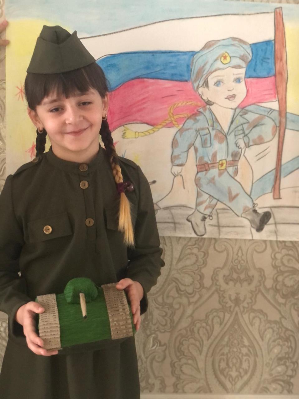 Ученица 2 "а" класса Шовхалова М. подготовила рисунок на районный конкурс "Служу России", приуроченную ко Дню Защитника Отечества.