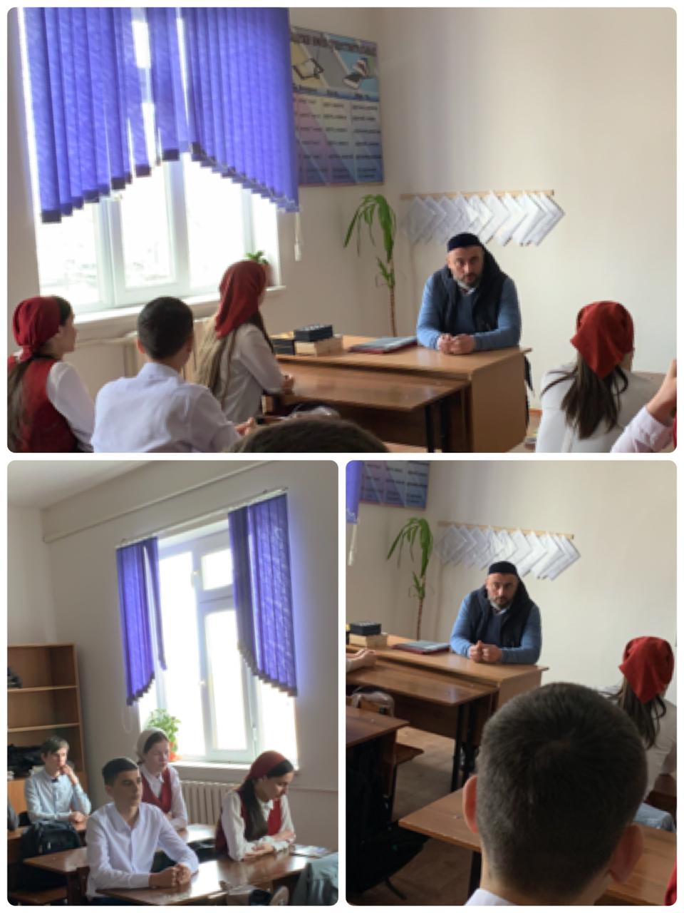 03.03.2021Педагог-организатор по ДНВ Юнусов Р.Х. провёл беседу в 9-х классах на тему: «Вред от курения,алкоголя и наркотиков»(«... С каждого будет спрошено в судный день,как он распорядился своим здоровьем ...»)