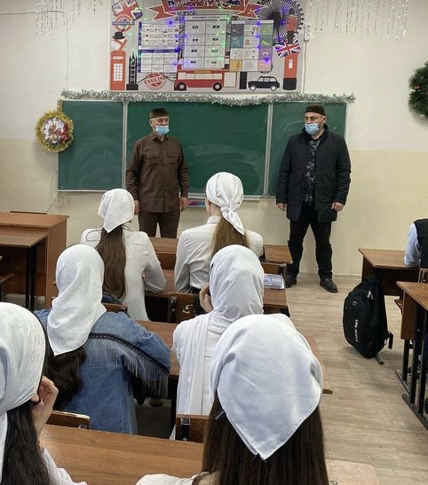 Зам.имама Шахбиев А.М.и педагог-организатор по ДНВ Юнусов Р.Х. провели беседу в 8 классе.