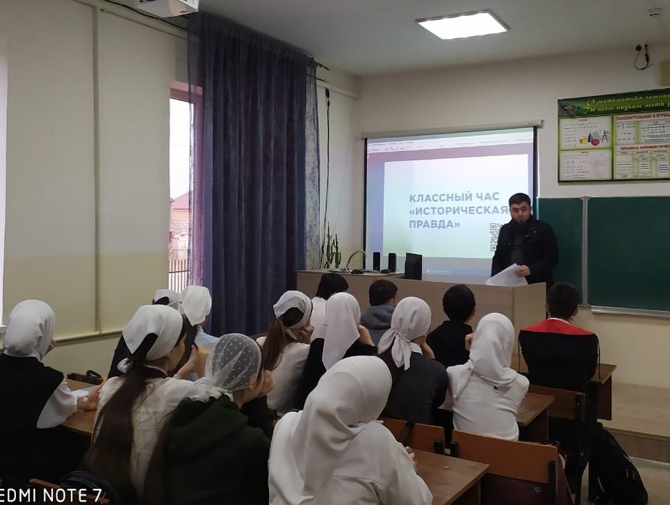 В рамках реализации нацпроекта «Образование» 1 марта в МБОУ «ООШ с.Катар-Юрт» проведен классный час на тему: «Историческая правда».