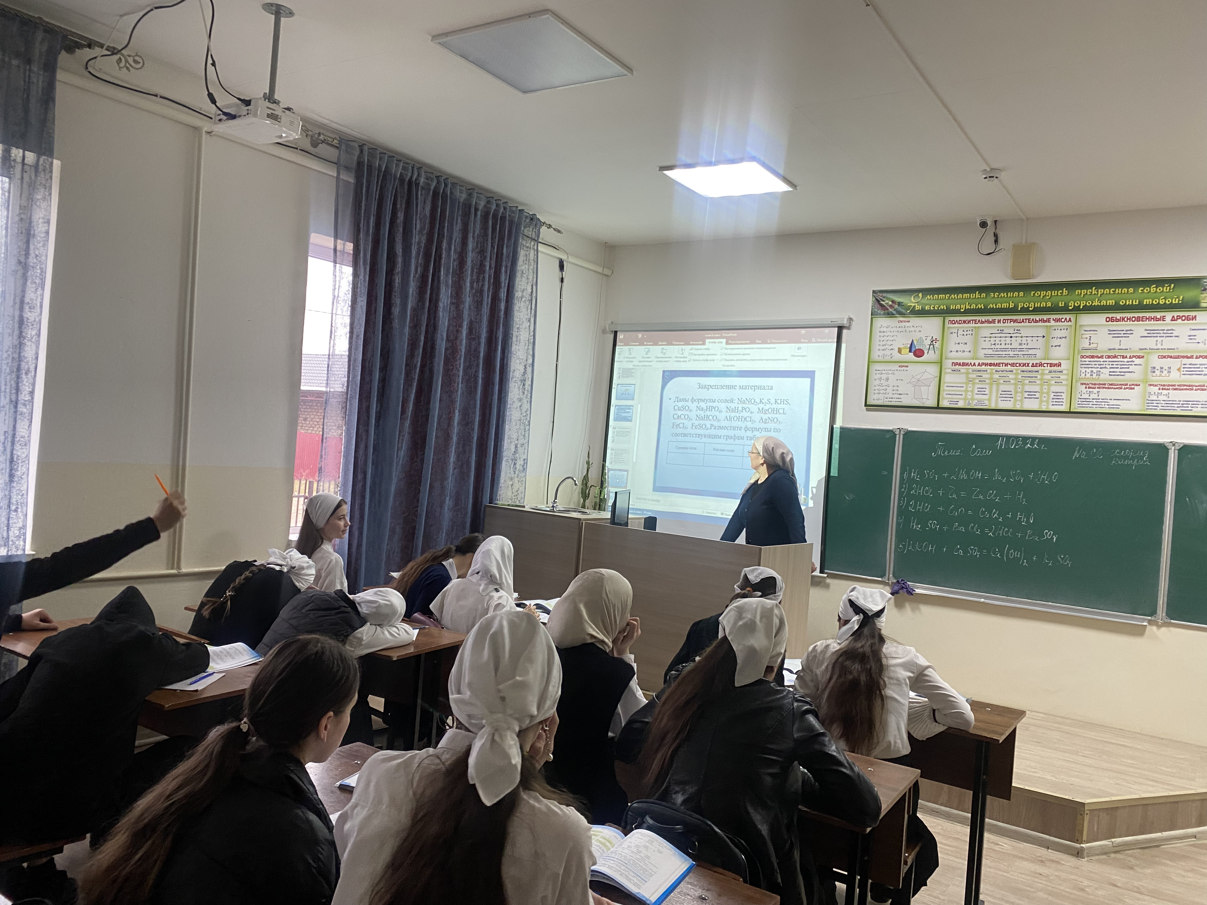 14.03.2022г. учитель химии Астамирова А.М. провела открытый урок в 8 классе .На тему: «Соли». С целью:Сформировать основные понятия о составе, номенклатуре, свойствах и значении солей.✅