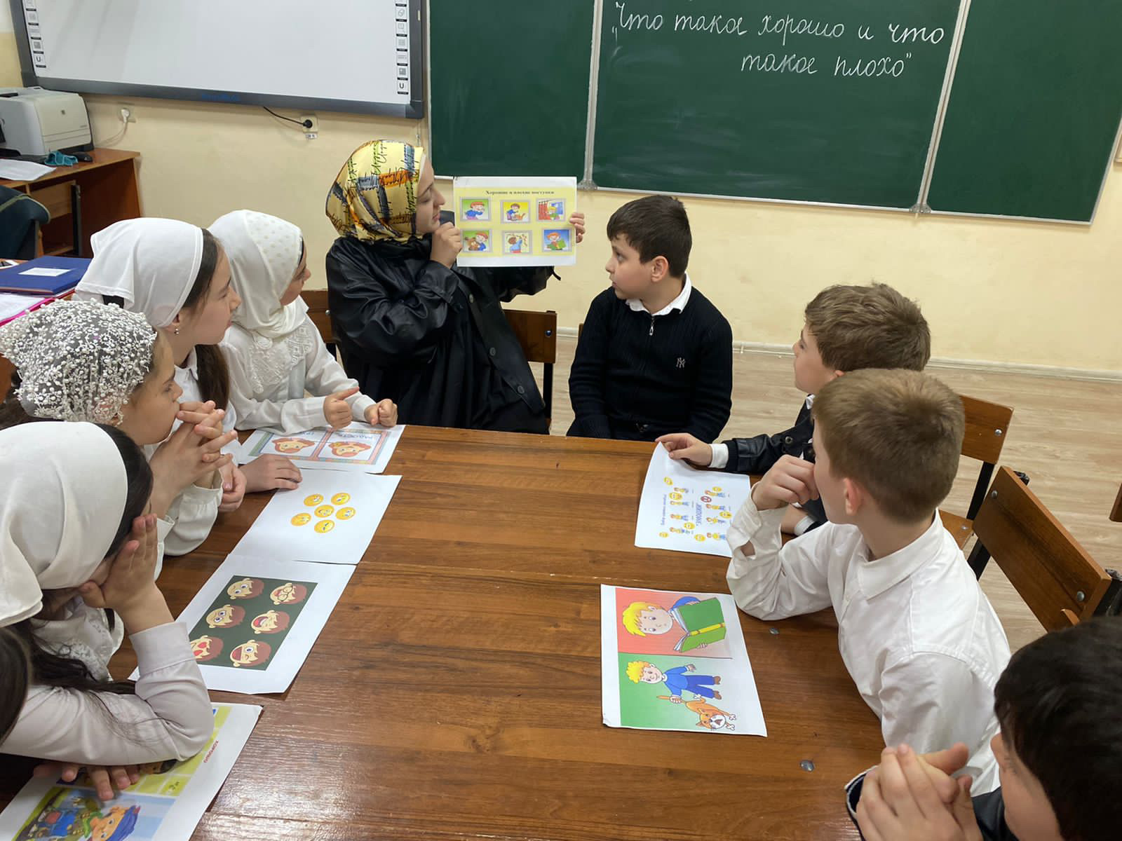 Беседа с психологом Бачаевой Хадижат на тему:"Что такое хорошо и что такое плохо." Цель:разобрать с детьми понятия «плохие» и «хорошие» поступки.