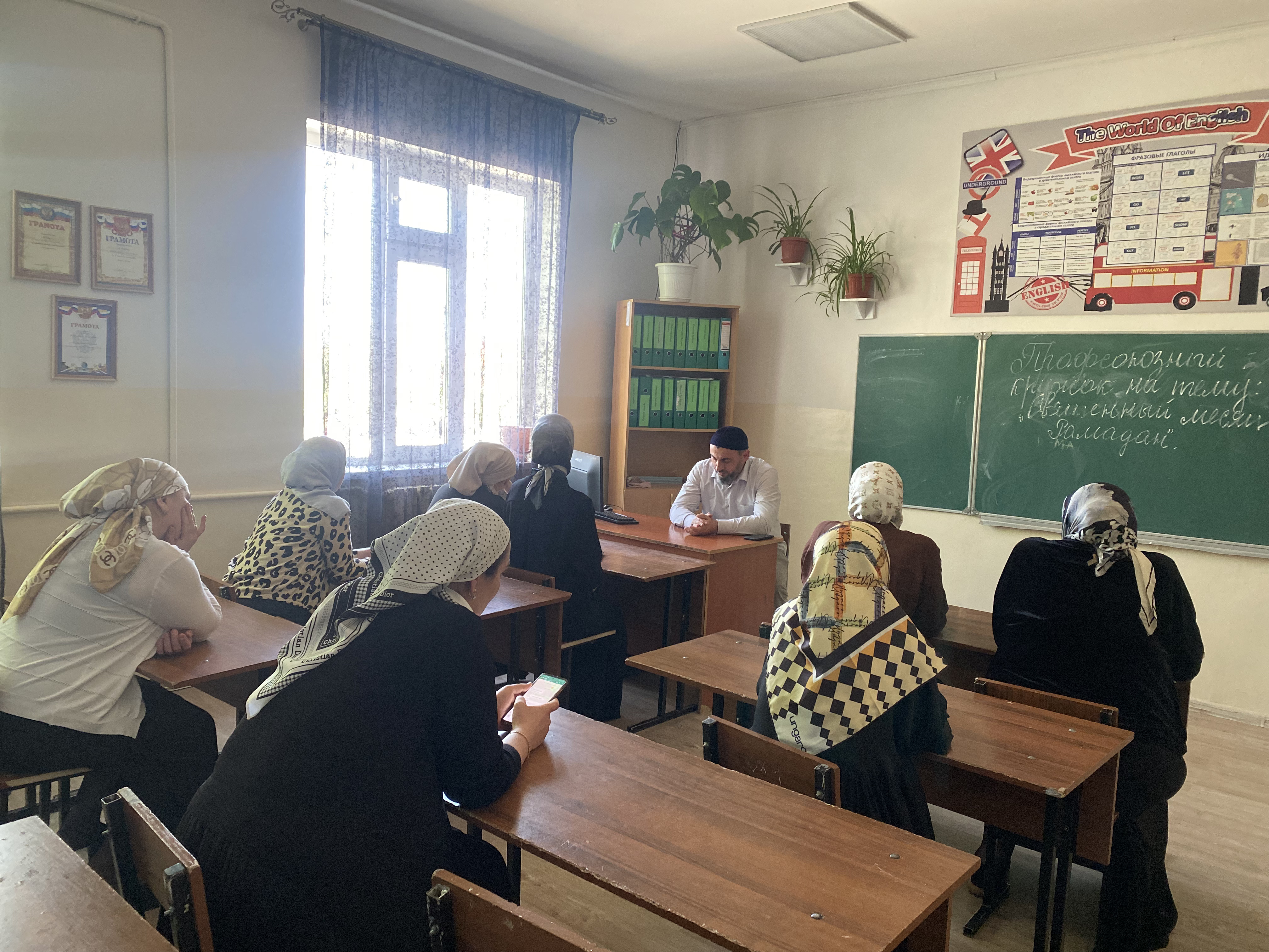 27.04.22г. В первичной профсоюзной организации МБОУ "ООШ.с.Катар-юрт" был проведён профсоюзный кружок на тему: «О величии месяца Рамадан». В ходе беседы педагог- организатор по ДНВ Юнусо