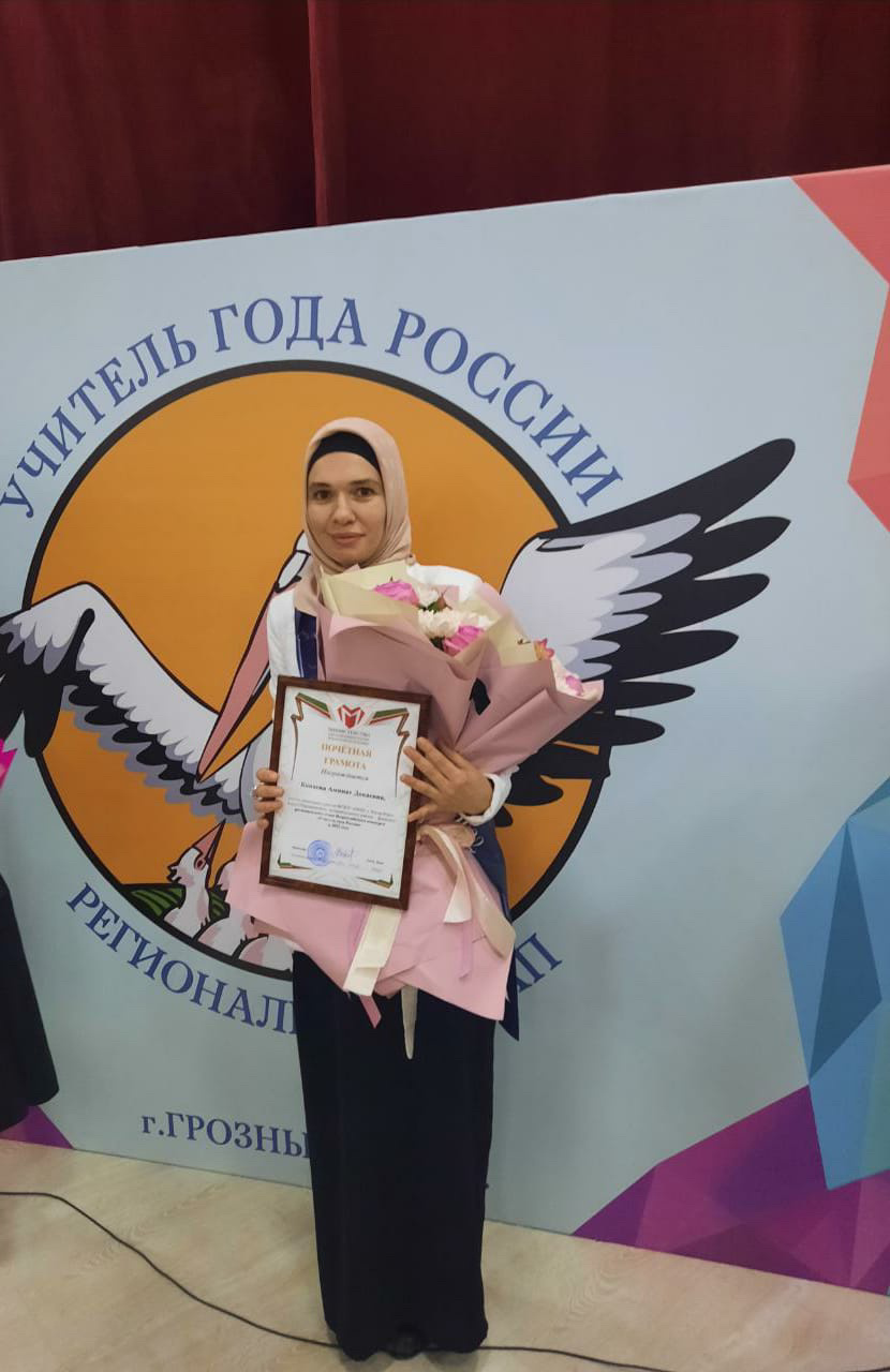 Учитель начальных классов Конаева А.Д. приняла участие в торжественной церемонии подведения итогов регионального этапа Всероссийского конкурса «Учитель года-2022» Дала т1яхье бертке йойла Хьа Амина!