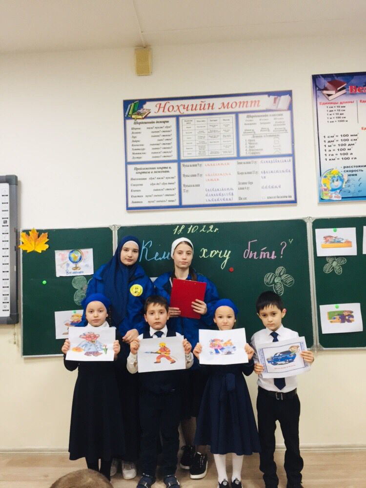 Классный час «Кем я хочу быть»Педагог-организатор Назирова С.Т. совместно с ЕДЮО «Юные Кадыровцы» провели классный час . С целью расширить представление детей о мире профессий, формировать учебно-