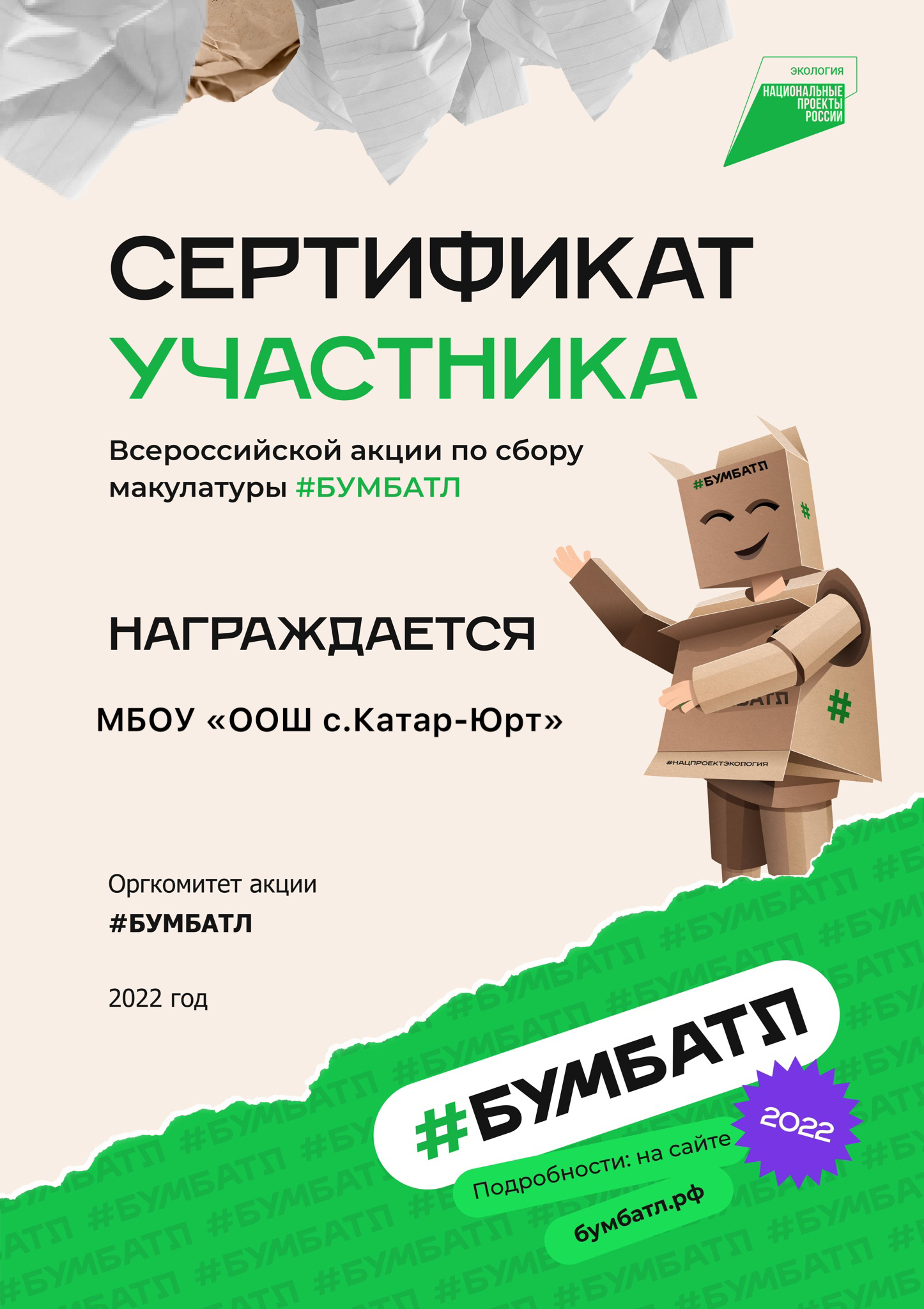 Сертификат участника #бумбатл