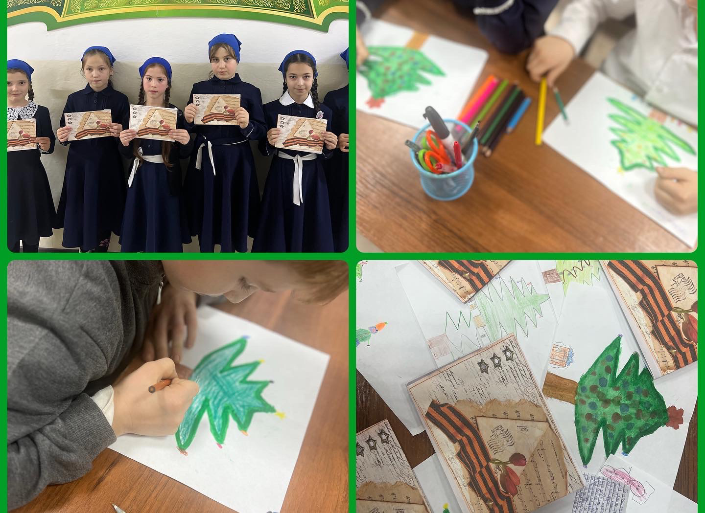 В рамках участия во Всероссийской молодежной акции «Фронтовая открытка» Педагог-организатор Назирова С.Т. с обучающимися 3-4 классов подготовили самодельные открытки с Новогодними поздравлениями
