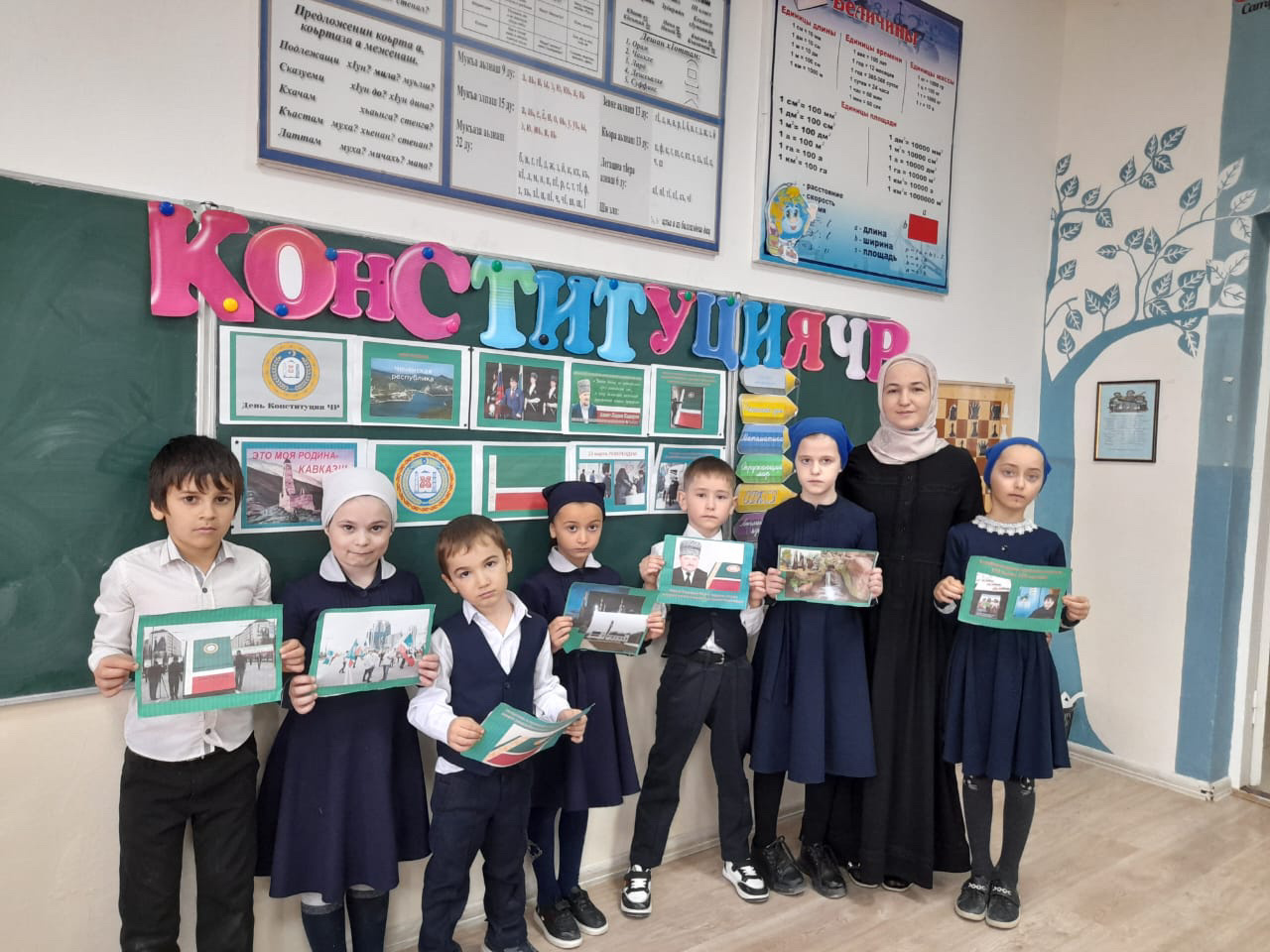 В МБОУ «ООШ с.Катар-Юрт» прошли классные часы приуроченные ко Дню Конституции Чеченской Республики, которой в этом году исполнилось 20 лет.