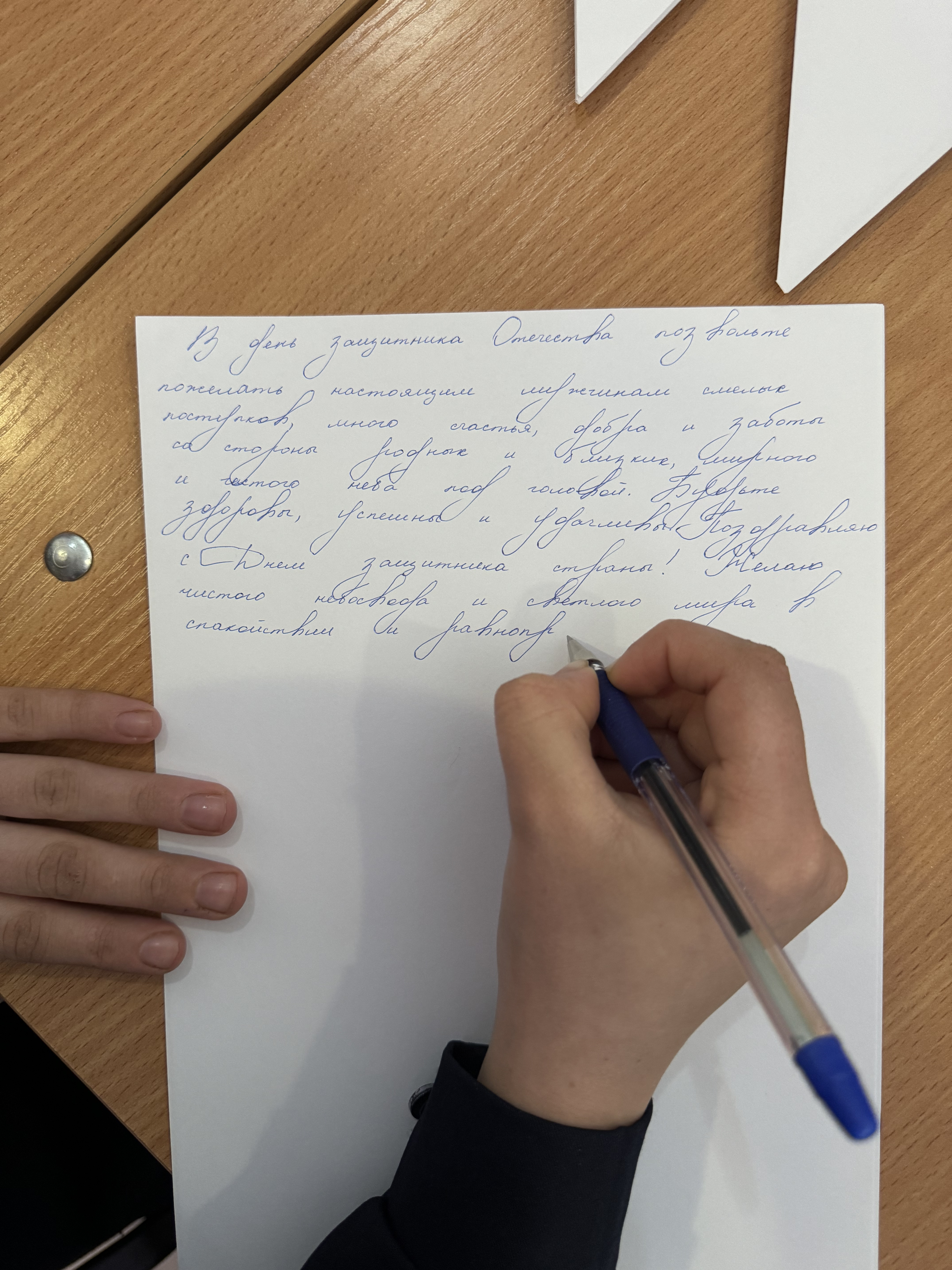 С 3 октября 2022 года по всей России стартовала всероссийская акция "Письмо солдату". Суть этой акции - письма российским солдатам , которые выполняют свой военный и гражданский долг, принимая участие в специальной военной операции, находящиеся на лечении в госпиталях. Очередной раз, наши учащиеся с удовольствием приняли участие в этой акции. Важно, что эти письма - весточка из мирной жизни, ведь там добрые слова, детские рисунки, пожелания здоровья и победы.