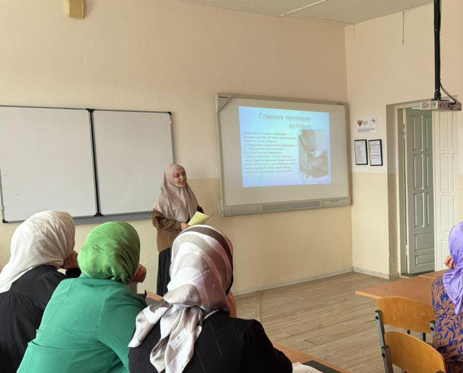 04.04.2024г. В МБОУ "ООШ с. Катар-Юрт" педагогом-психологом был проведён семинар для педагогов и родителей на тему "Что такое аутизм" Цель семинара: формирование у педагогов психолого-педагогической компетенции для работы с детьми с расстройством аутистического спектра.