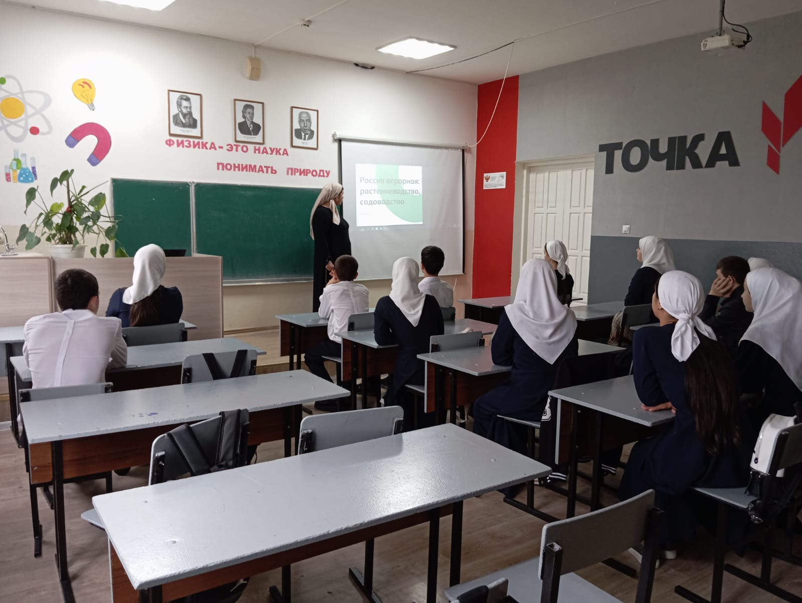 В МБОУ "ООШ с. Катар-Юрт" 26 сентября в рамках профориентационного курса «Россия мои горизонты» проведены тематические занятия в 6-9 классах на тему: «Россия аграрная: растениеводство, садоводство».
