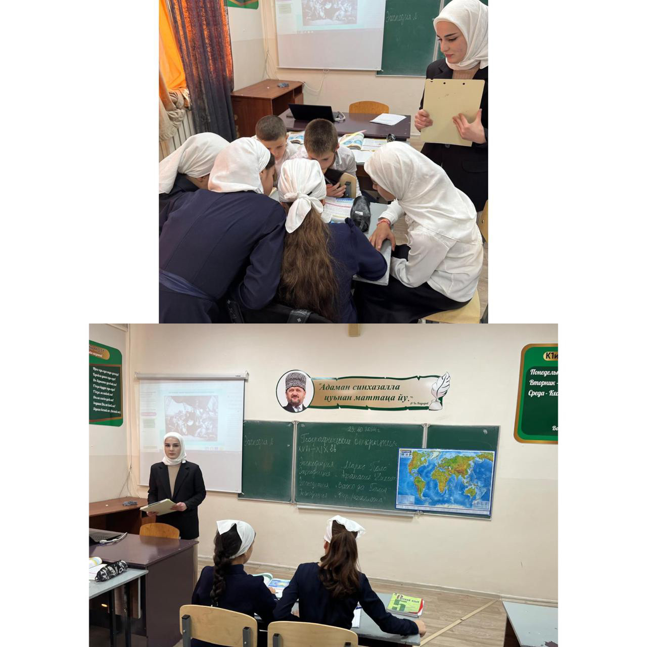 Согласно графику проведения открытых уроков учитель географии Базуркаева Т.А. провела открытый урок в 5 классе по теме: « Географические открытия в XVII-XIX вв».
