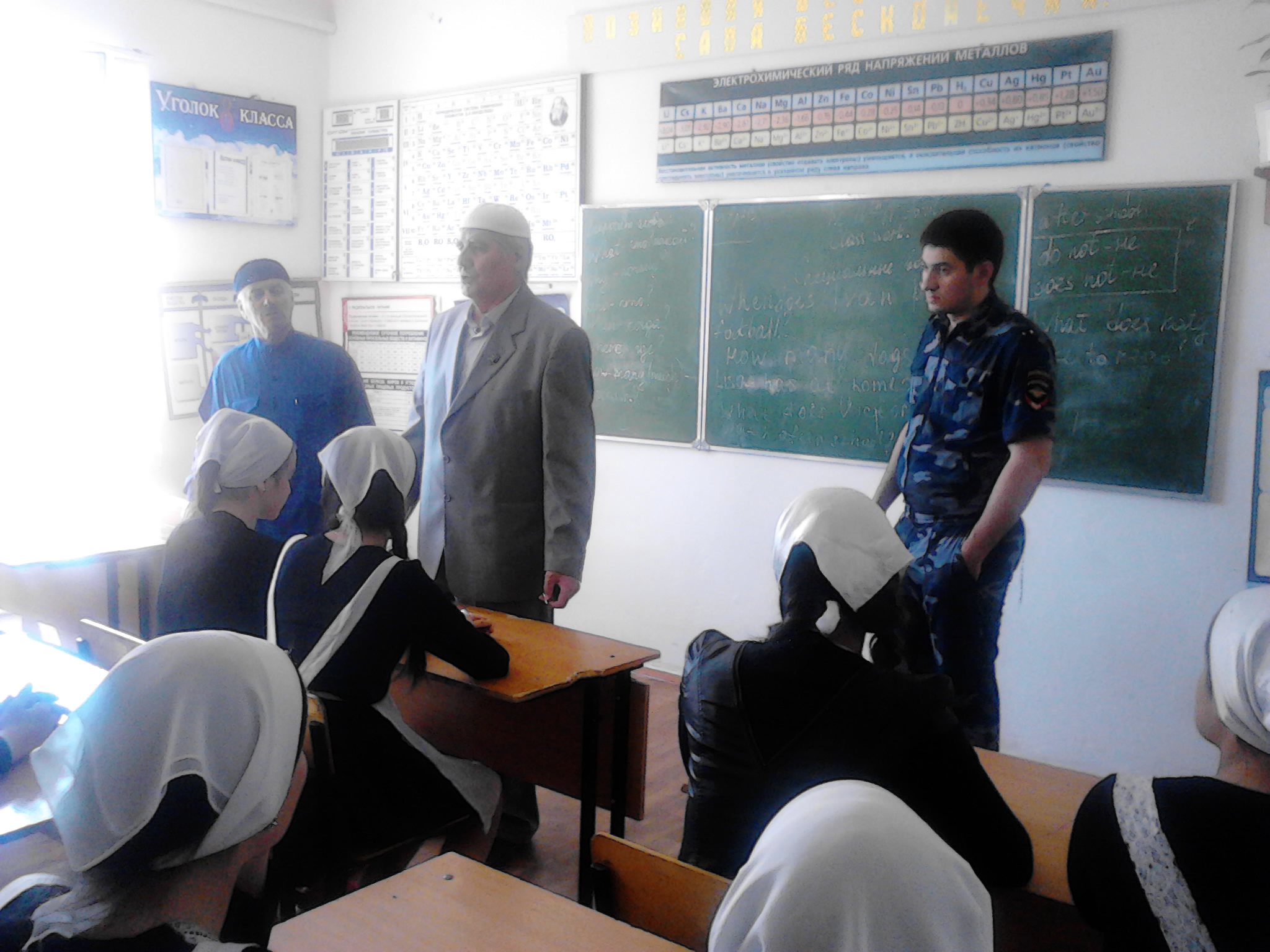 встречи учащихся школы с помощником имама села Шахбиевым А.М. и участковым инспектором Махамаевым С. от 18.04.2015г.