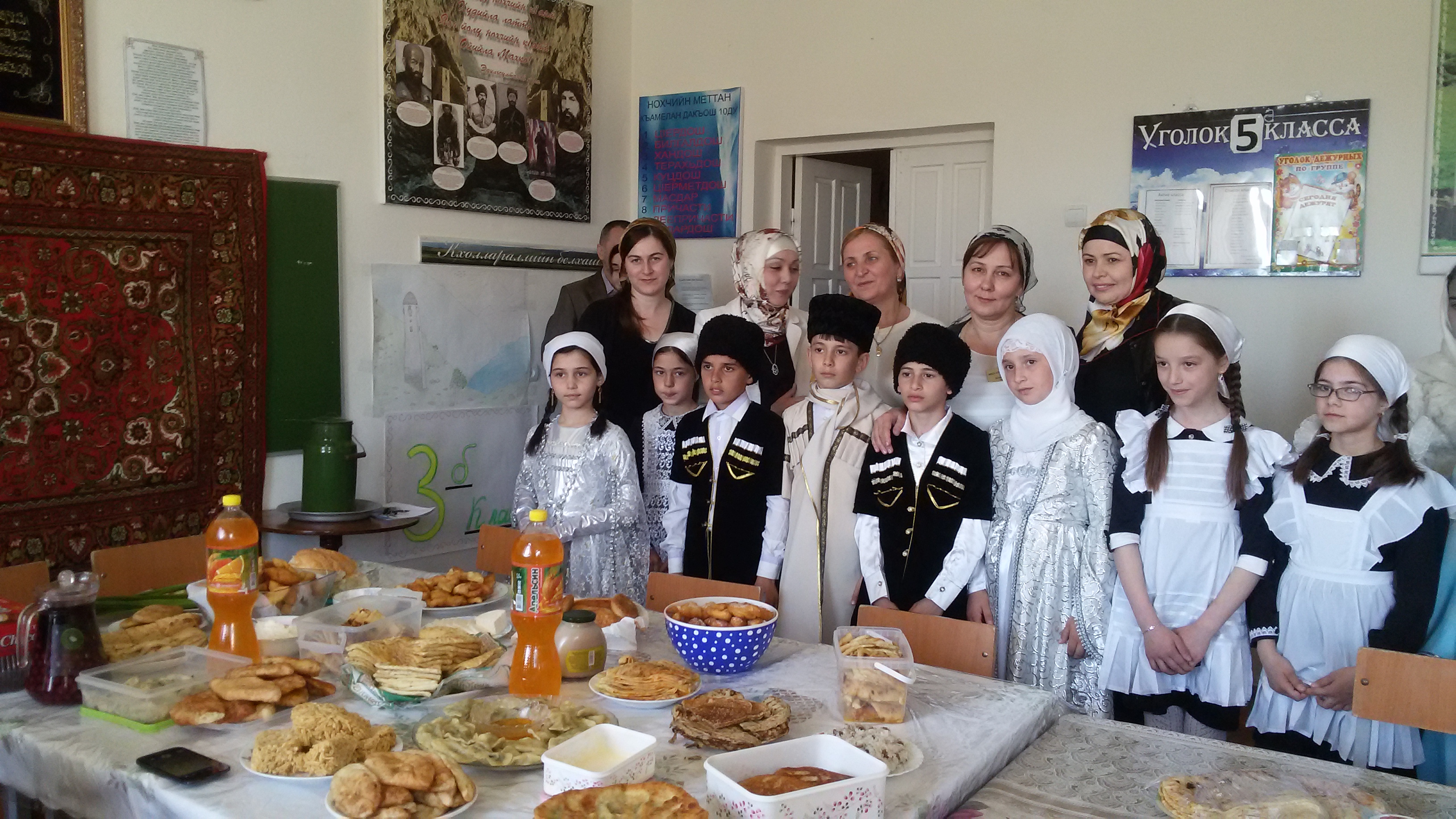 25 апреля в школе была организована и проведена ярмарка «Национальных блюд» и «Национальных костюмов». Для проведения и подготовки этого мероприятия в школе был создан оргкомитет в составе: Татаевой П. М. Терлоевой М. С-А. Икаевой Х. Д. Базуркаевой А. А.Проводились конкурсы по следующим номинациям:- «Изобилие национальных блюд»- «Национальный костюм»- «Лучшая стенгазета»- «Лучшее творческое исполнение»- «Лучшее приветствие»- «Лучшее оформление класса»Ребята тщательно подготовились к ярмарке, красиво оформили свои классы в национальном чеченском стиле, нарядились в красивые костюмы, приготовили национальные чеченские блюда, которые все дегустировали. Гостеприимно приветствовали своих гостей. Пели песни на чеченском языке, читали загадки, стихи известных чеченских писателей, показывали шуточные сценки, танцевали. Особенно хочется отметить учащихся 4 «А» класса, классный руководитель Тепсуркаева З. А., которые заняли четыре призовых места в различных номинациях.Также одним из лучших мероприятие провел 3 «Б» класс, классный руководитель Джамбулатова А. Т.В старших классах отличились 7 и 8 классы, классные руководители Минтаева Л. Т., Оздамирова Т. Б.Победители конкурсов в торжественной обстановке были награждены на общешкольной линейке почетными грамотами и призами.