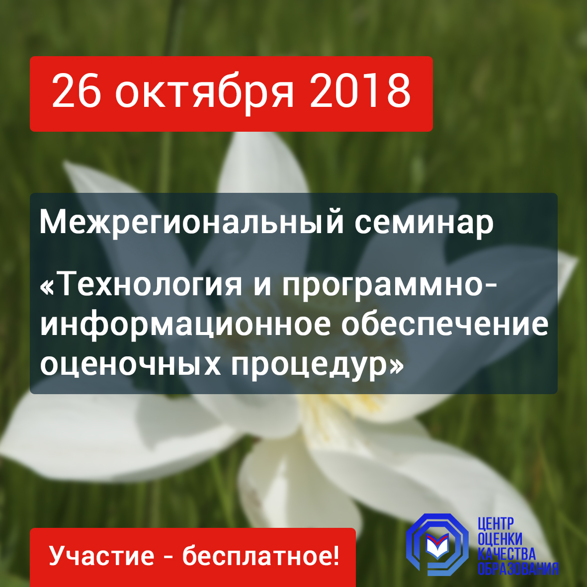 26 октября 2018 года состоится межрегиональный семинар на тему: «Технология и программно-информационное обеспечение оценочных процедур»