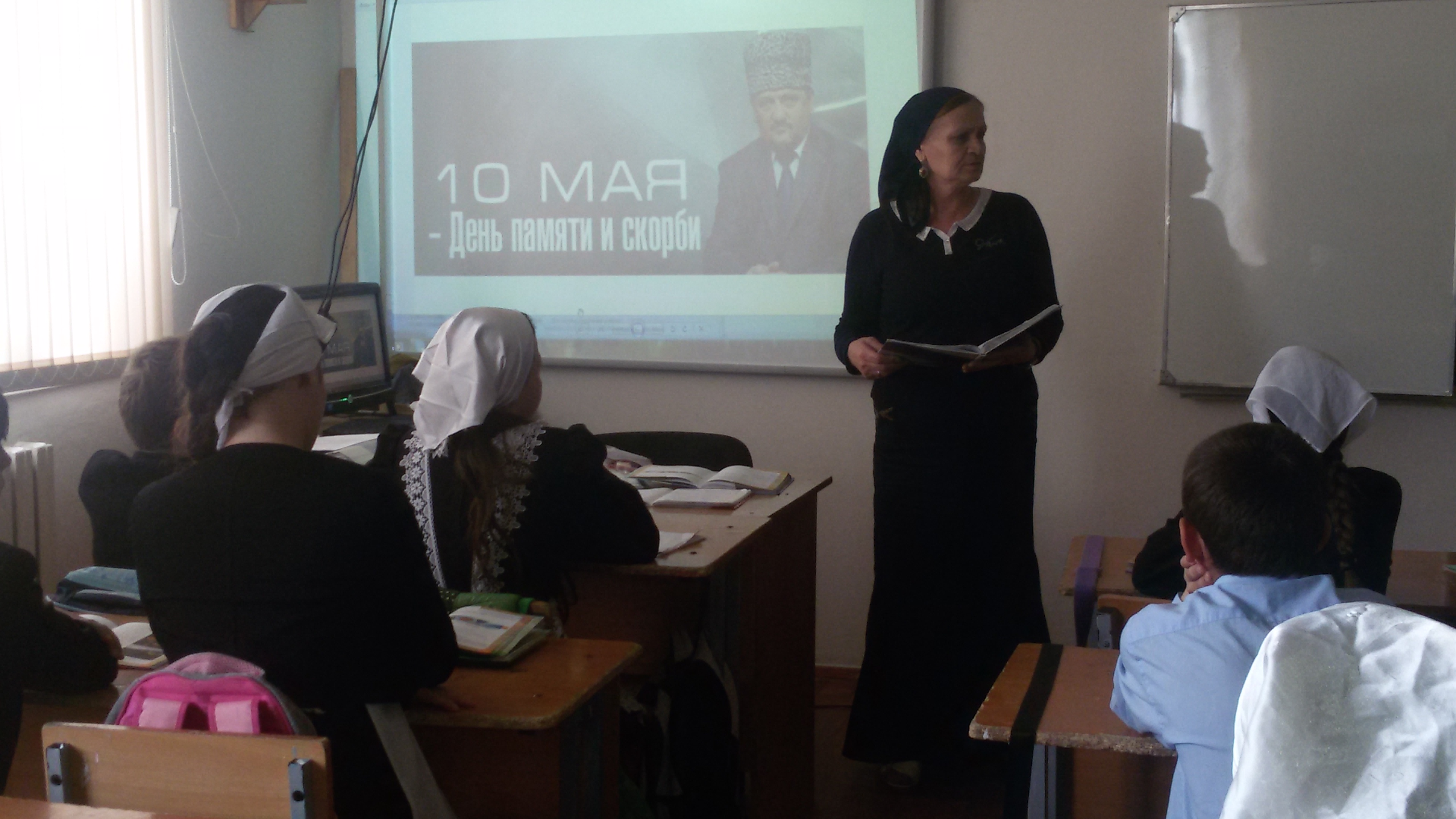 10 мая - День памяти и скорби народов Чеченской РеспубликиУказ об установлении 10 мая Днем памяти и скорби народов ЧР был подписан Главой ЧР Рамзаном Кадыровым в апреле 2011 года. В День памяти и скорби в Чечне вспоминают тех, кто погиб, защищая Родину, во имя её единства и мирного процветания, жителей республики, которые не пережили тяжелые годы депортации, которая унесла жизни сотен тысяч людей, умерших от голода, холода, тяжелых болезней.В связи с этим днем, в нашей школе во всех классах прошли тематические уроки, классные часы на тему «Трагические даты истории чеченского народа – Дни памяти…»08.05.2015 г. было организовано и проведено чтение мовлида.