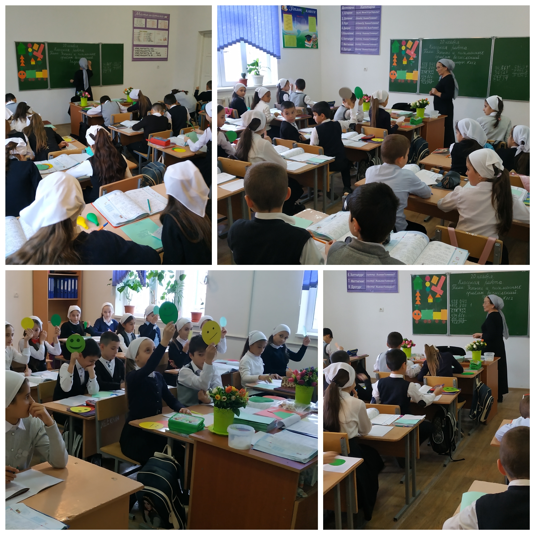 В МБОУ "ООШ с.Катар-Юрт" учитель начальных классов Мутаева С.М. на неделе начальной школы, провела открытый урок в 4 "а" классе по математике на тему: "Устные и письменные приемы вычислений".